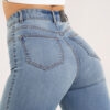 Modeliuojantys šviesiai mėlyni kliošiniai džinsai iš elastingo premium audinio