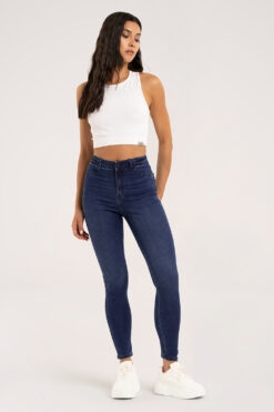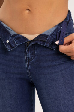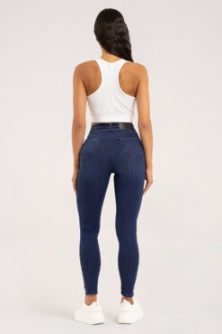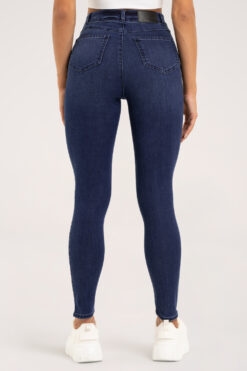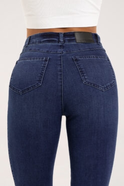 Modeliuojantys tamsiai mėlyni džinsai iš elastingo premium audinio