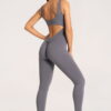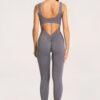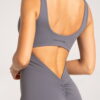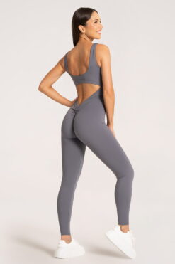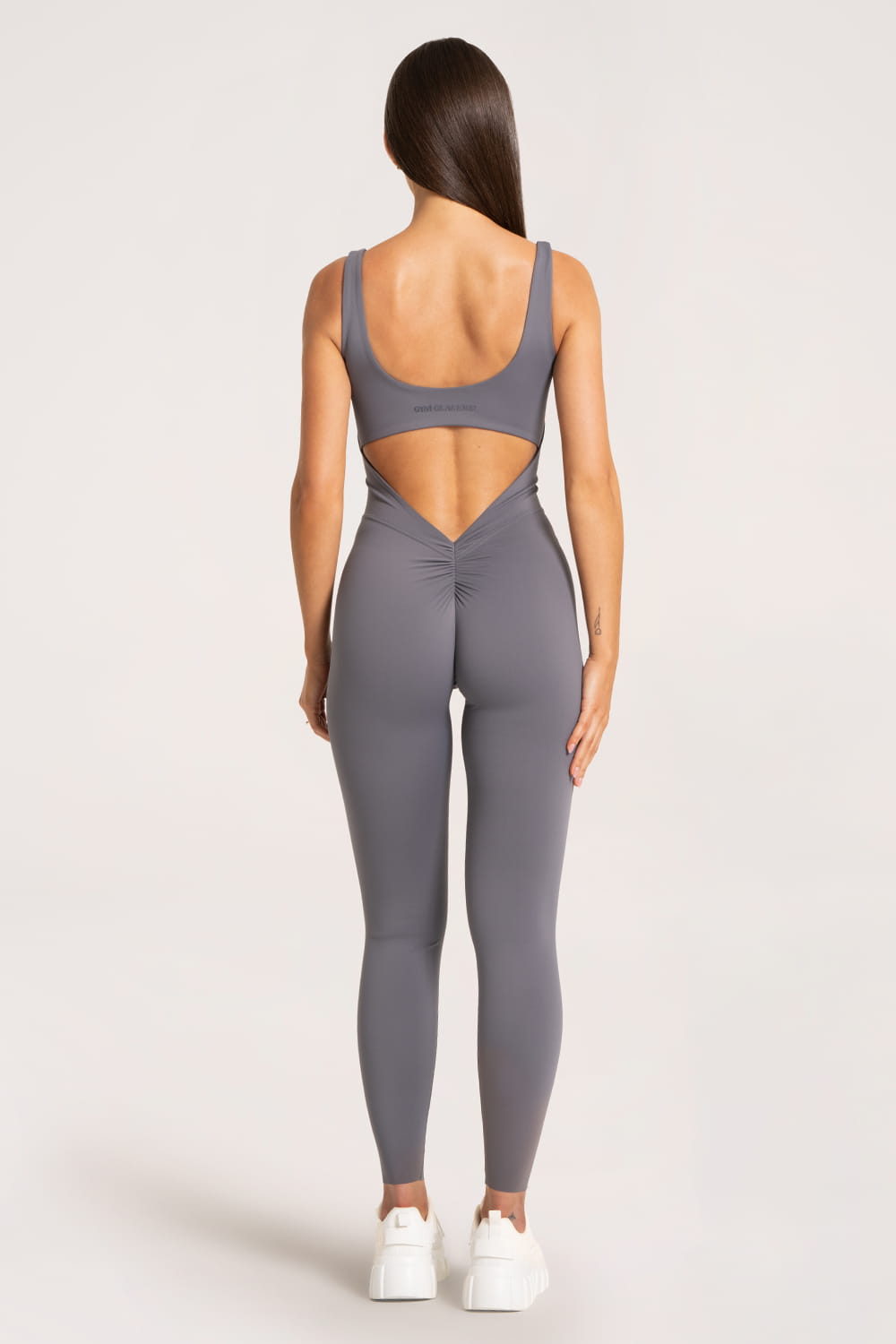 Giliai atidengta nugara su V formos linija papildomai pabrėžia figūrą iš nugaros pusės. Švelnus raukinys ties sėdmenimis subtiliai juos išryškina ir suteikia formoms apimties.