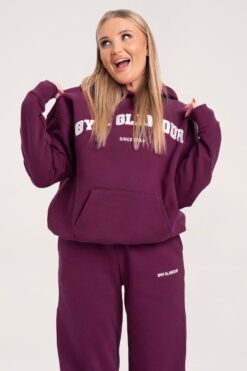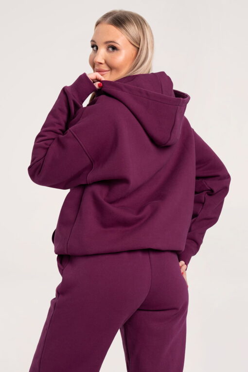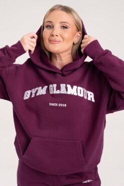 Oversize violetinis džemperis “College” su gobtuvu.