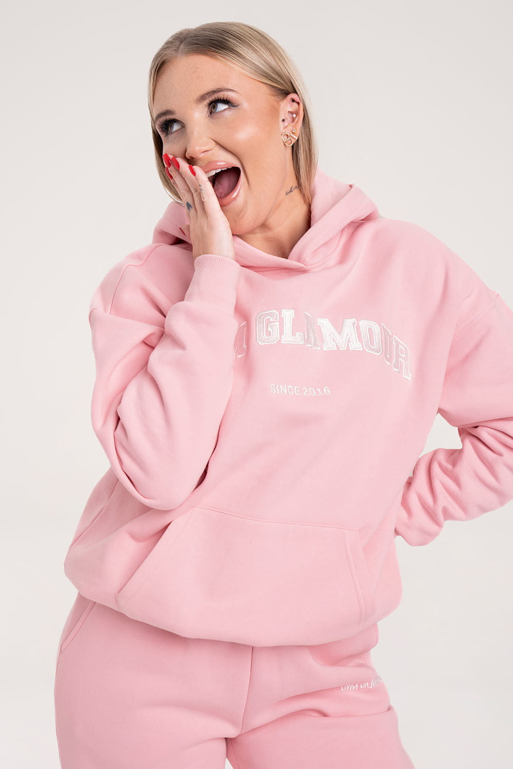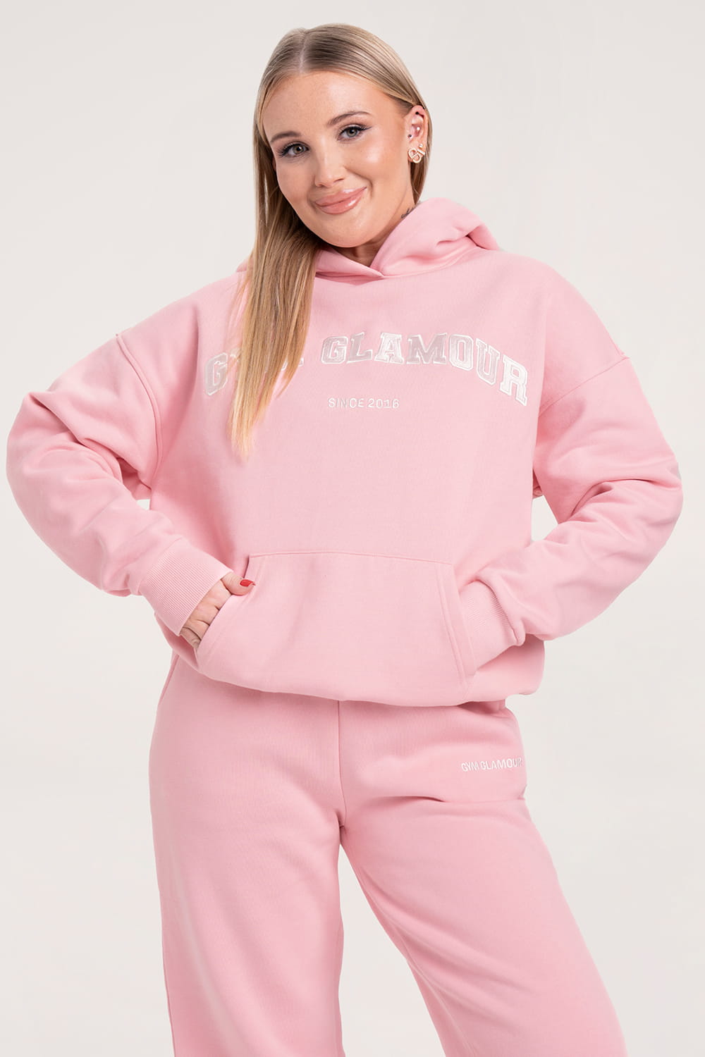 • Išsiuvinėtas „Gym Glamour“ logotipas ant krūtinės college stiliumi.