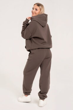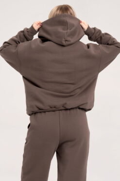 Oversize rudas džemperis “College” su gobtuvu.