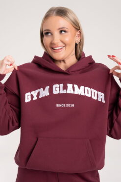 - Išsiuvinėtas „Gym Glamour“ logotipas ant krūtinės college stiliumi.