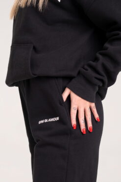 - Stilingos detalės – klešnių apačia su raišteliais ir subtilus, išsiuvinėtas Gym Glamour logotipas.