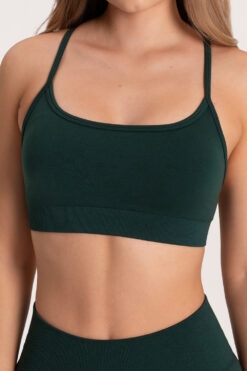 Minimalistinė žalios spalvos patogi sportinė liemenėlė, sukurta užtikrinti aukštą dėvėjimo komfortą kasdienės veiklos ir treniruočių metu.