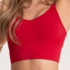 Minimalistinis raudonos spalvos patogus sportinis liemenėlės tipo topas su pailgintu liemeniu, užtikrinantis gerą krūtinės prilaikymą ir aukštą dėvėjimo komfortą.