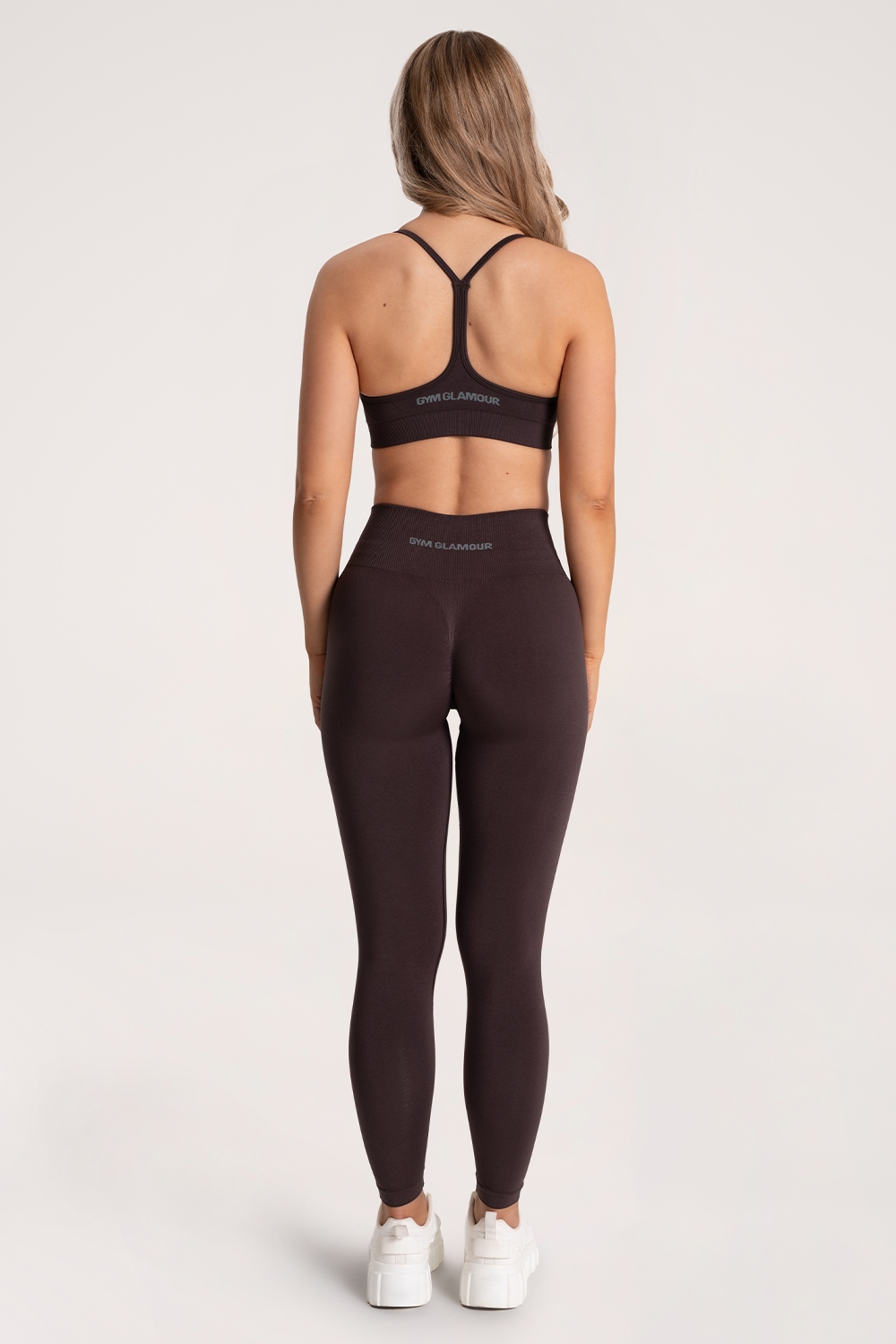 Gym Glamour logotipas subtiliai įkomponuotas galinėje juosmens dalyje.